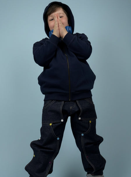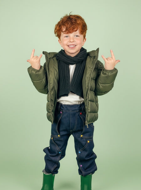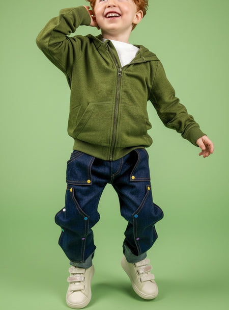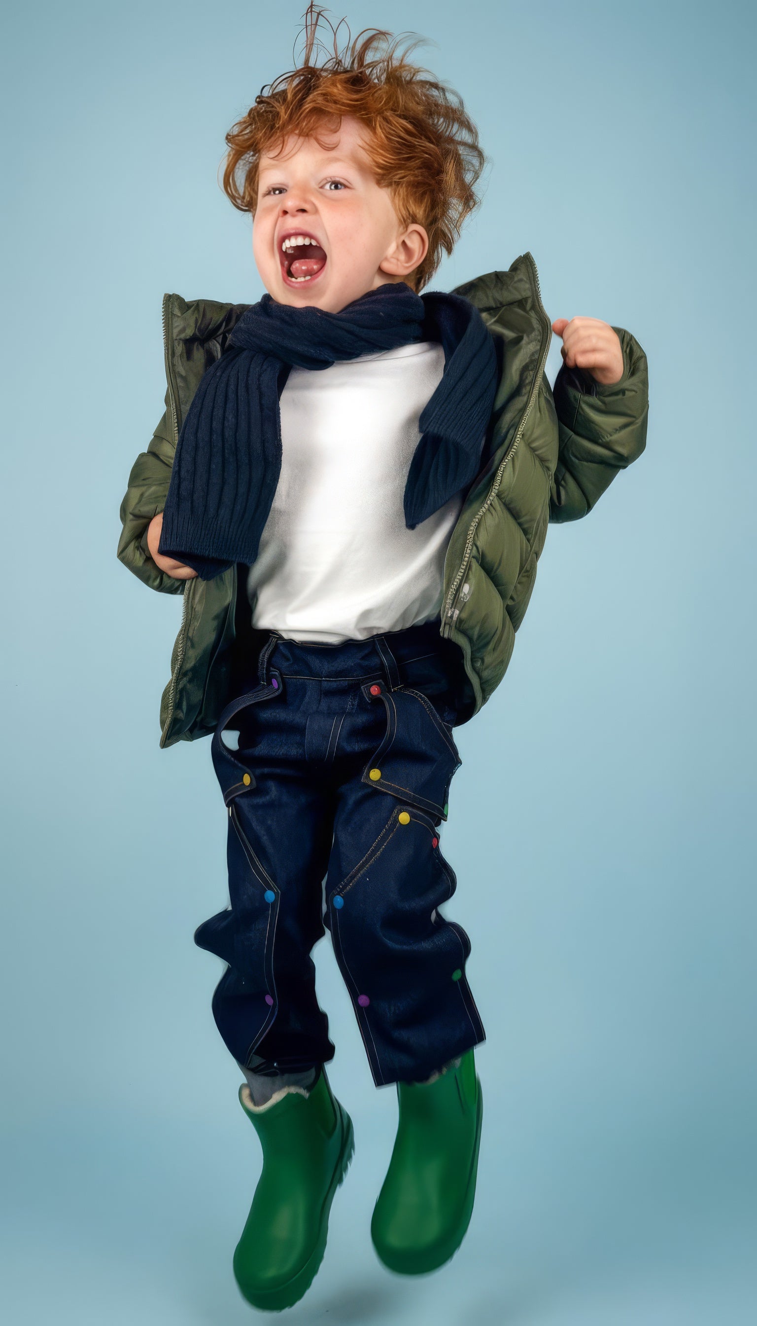 De cette frustration est née Ti’Patch : un pantalon résistant, pensé pour durer, avec des patchs interchangeables que les enfants adorent.